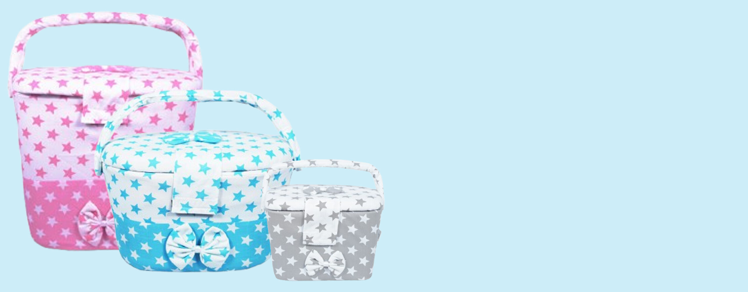 ₹2,500.00₹1,480.00Item Name: Baby Box Round Sky Blue & White With Star Design