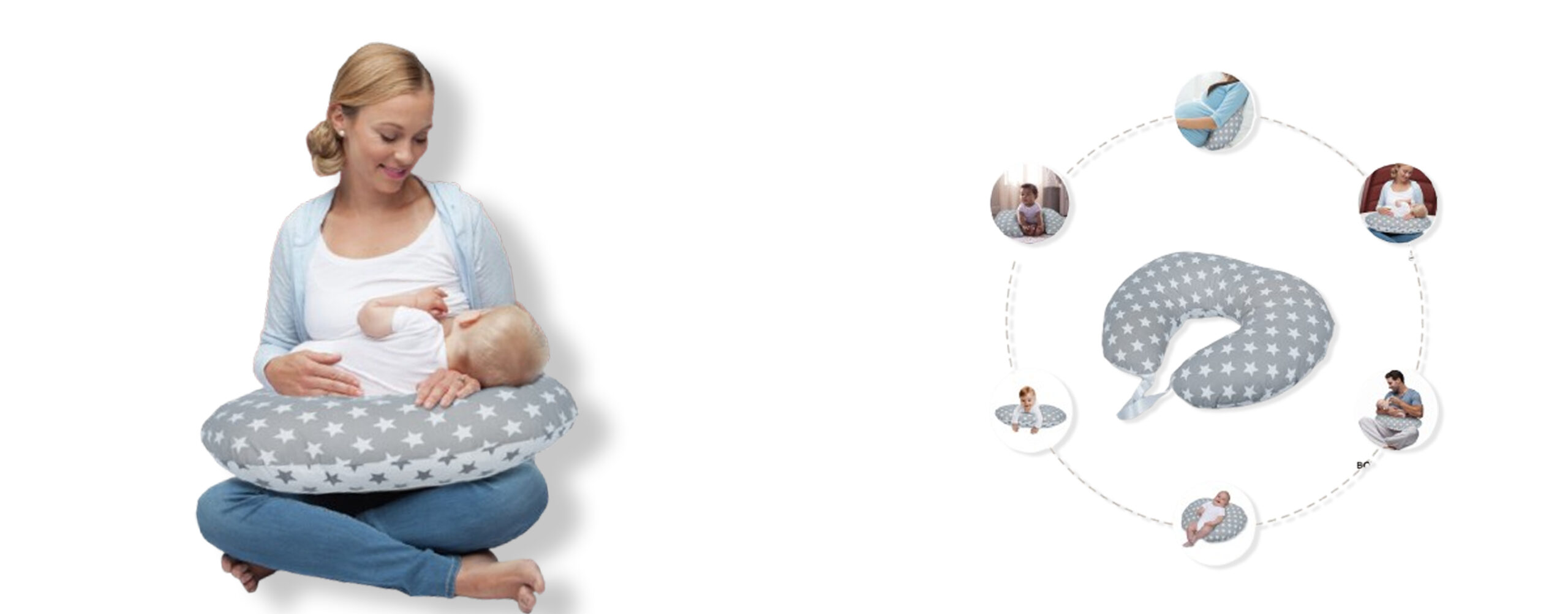 ₹1,200.00₹666.00Item Name: S3 Baby Feeding Pillow Ash & White with Star Design